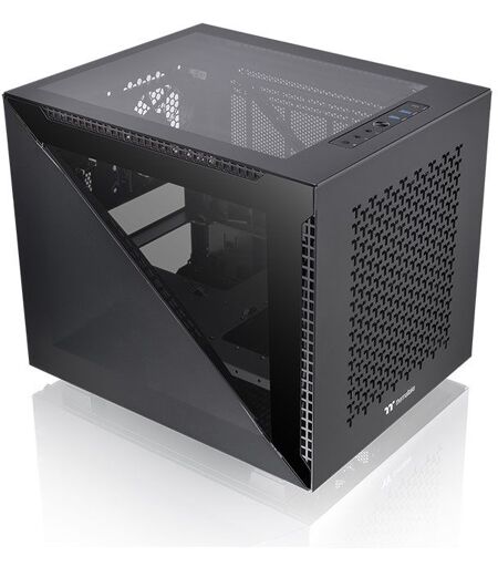 Thermaltake Divider 200 TG - Micro boîtier - micro ATX - panneau latéral fenêtré (verre trempé) - pas d'alimentation (PS/2) - noir - USB/Audio
