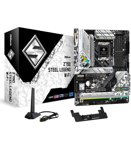 Asrock Z790 Steel Legend WiFi. Fabricant de processeur: Intel, Socket de processeur (réceptable de processeur): LGA 1700, Processeurs compatibles: Intel® Core? i5, Intel® Core? i7, Intel® Core? i9. Types de mémoire pris en charge: DDR5-SDRAM, Mémoire interne maximale: 128 Go, Type de support (slot): DIMM. Interfaces de lecteur de stockage prises en charge: M.2, SATA III, Types de lecteurs de stockage pris en charge: HDD & SSD, Niveaux RAID: 0, 1, 5, 10. Type d'interface Ethernet: 2.5 Gigabit Ethernet, Contrôleur de réseau local (LAN): Dragon RTL8125BG, Norme Wi-Fi: Wi-Fi 6E (802.11ax). composant pour: PC, Elément de forme de carte mère: ATX, famille de composant de produits: Intel ...