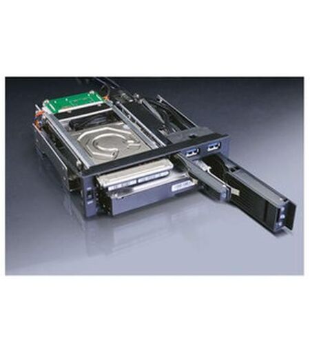 L' Akasa LOKSTOR M51 est un adaptateur qui vous permettra d'installer 1 HDD 3.5" et un SSD/HDD 2.5" dans une baie PC de 5.25". Une solution idéale pour optimiser rapidement et simplement l'aménagement intérieur de votre boitier. En bonus, connectez le câble USB 3.0 à votre carte mère (si compatible USB 3.0) pour disposer de 2 connecteurs USB 3.0 en façade ! Caractéristiques : Supporte 1 SDD/HDD 2.5?? (hauteur 9.5 mm max.) et 1 HDD 3.5?? S?insère dans une baie PC 5.25?? Design intelligent pour un accès HDD sans outils Deux ports USB 3.0 inclus pour une connectivité plus rapide Structure durable en acier inoxydable Sécurité par verrouillage à clé Compatibilité SATA : SATA I / II / III Interface : SATA, deux ports USB 3.0 avec connecteur carte-mère interne Coloris : Noir ...