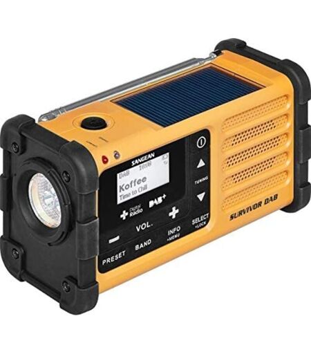 Radio d'extérieur Sangean Survivor DAB DAB+, FM radio d'urgence fonction de charge de la batterie, lampe de poche, rechargeable, manivelle, panneau s