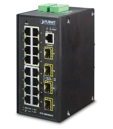 PLANET Technology PLANET IGS-20040MT - Commutateur - Géré - 16 x 10/100/1000 + 4 x Gigabit SFP - Montage sur rail DIN, fixation murale - 24 V c.a. / 12 - 72 V c.c.