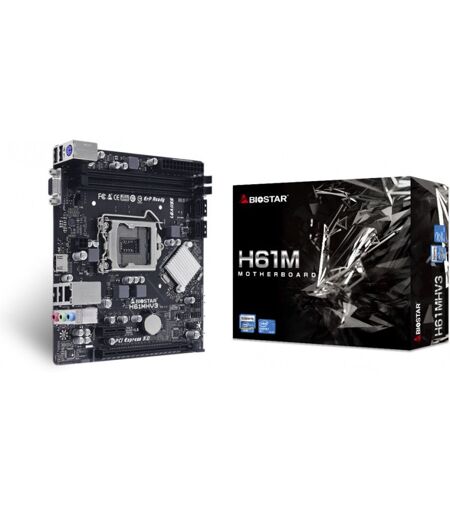 Biostar H61MHV3. Fabricant de processeur: Intel, Socket de processeur (réceptable de processeur): LGA 1155 (Socket H2), Processeurs compatibles: Intel® Celeron®, Intel® Core? i3, Intel® Core? i5, Intel® Core? i7, Intel® Pentium®. Types de mémoire pris en charge: DDR3-SDRAM, Type de support (slot): DIMM, Canaux de mémoire: Double canal. Interfaces de lecteur de stockage prises en charge: SATA II. Type d'interface Ethernet: 10 Gigabit Ethernet, 100 Gigabit Ethernet, Contrôleur de réseau local (LAN): Realtek RTL8111H. composant pour: PC, Elément de forme de carte mère: micro ATX, famille de composant de produits: Intel ...