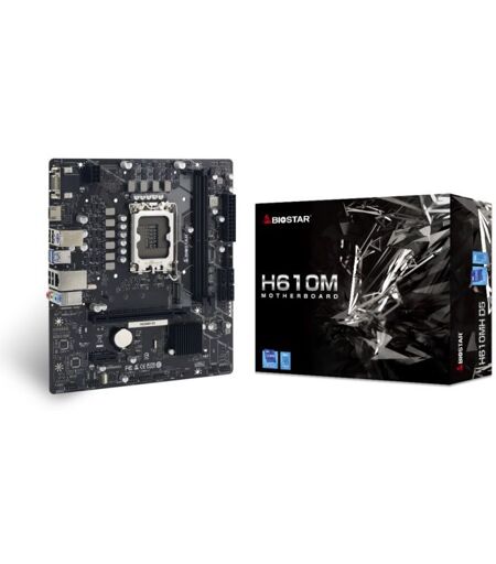 Intel H610 LGA1700 Micro-ATX DDR5 4800 MHz Emplacements m?moire 2 1xPCI-Express 3.0 1x 1xPCI-Express 4.0 16x 2xM.2 1x15pin D-Sub 1xHDMI 4xUSB 2.0 2xUSB 3.2 1xPS/2 1xRJ45 3xConnecteur audio SATA USB 2.0 USB 3.2 Vid?o D?pend du CPU LAN Gigabit Audio Realtek ALC897 En-t?te TPM. ...
