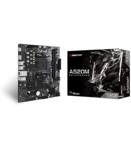Biostar A520MT. Fabricant de processeur: AMD, Socket de processeur (réceptable de processeur): Emplacement AM4, Processeurs compatibles: AMD Ryzen? 3. Types de mémoire pris en charge: DDR4-SDRAM ...