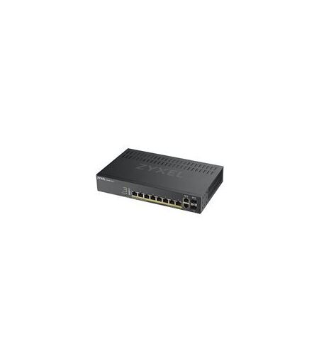 8 ports Gbps RJ45 PoE+ - 2 ports Gbps combo (RJ45/SFP) - budget PoE 130 W - fanless - compatible NebulaFlex ...