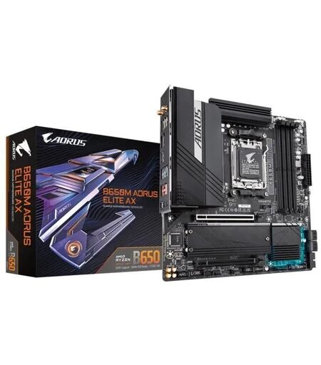 Gigabyte B650M AORUS ELITE AX - Carte-mère - micro ATX - Socket AM5 - AMD B650 Chipset - USB 3.2 Gen 2, USB-C 3.2 Gen2, USB 3.2 Gen 1, USB-C 3.2 Gen 2x2 - 2.5 Gigabit LAN, Wi-Fi 6E, Bluetooth -...