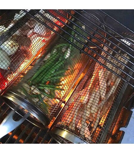 Grille de barbecue pour feu de camp Vaisselle de pique-nique Grille de cuisson pour barbecue Grille de barbecue Panier à grils roulants ...