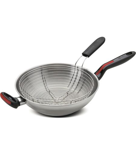 Lagostina Linea Rossa Wok À Induction Avec Panier À Frire En Acier Inoxydable 18/10 Argenté 28 Cm