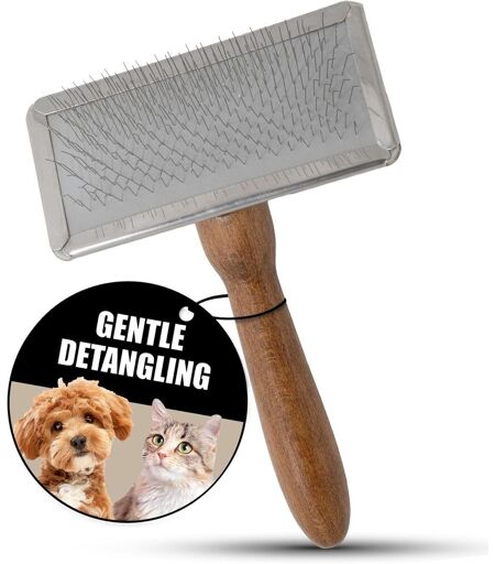 Tauro Pro Line Brosse En Bois Pour Chien Et Chat Avec Dents En Métal Et Design Élégant, 12 X 9 Cm, M, Marron[Z901]