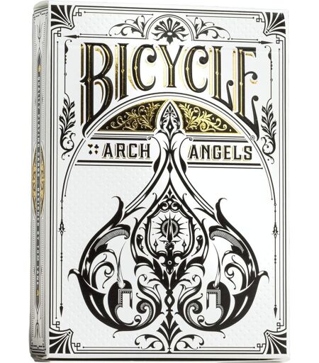 Inspiré de la mythologie et de l'illustration, le jeu Bicycle Archangels représente un niveau élevé d'élégance dans la conception de cartes à jouer.L'?uvre d'art complexe est produite par Théory 11 et illustrée par l'artiste Tom Lane. Il a fallu six mois d'illustration à la plume.Le design du dos des cartes est le joyau de la couronne des Archanges. Il montre une juxtaposition du bien et du mal, de l'obscurité et de la lumière, de la nuit et du jour, des anges et des démons. Plus vous regardez de près, plus vous trouverez des détails, un jeu plein de surprises.Finition brevetée Classic Air-Cushion.Performances de glisse optimale, facilite aussi le mélange des cartes.Imprimé avec des encres végétales non toxiques et entièrement recyclable.As de pique, Joker, dos des cartes et étui entièrement personnalisés.La carte à jouer Bicycle est la marque de confiance pour une expérience de jeu exceptionnelle et cela depuis plus de 135 ans ! Des performances supérieures dans vos mains et sur la table grâce à notre finition exclusive ""Air cushion"" qui offre une jouabilité inégalée.Attention:Contient un jouet. La surveillance d'un adulte est recommandée.Attention:Ne convient pas aux enfants de moins de 36 mois.Attention:À utiliser sous la surveillance d\u2019un adulte ...