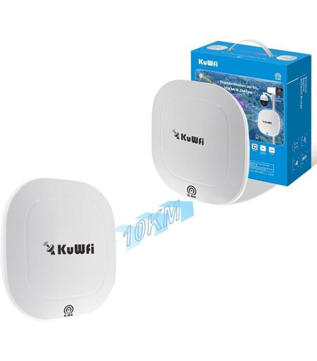 Qu'est-ce que le pont WiFi N650 : Wireless Bridge est un pont sans fil longue distance de 8-10 km pour l'extérieur de niveau entreprise qui utilise la norme de réseau sans fil 802.11a//n/ac wave2. Fonctionne sur la bande sans fil 5G ISM et peut facilement coupler des appareils point à point et point à multipoint. 5,8 G WiFi 2 x 2 (2 flux) MU-MIMO 802.11a/n/ac. Onde 2 (vitesse maximale théorique jusqu'à 867 Mbps). Ce produit prend en charge le pontage des routeurs Starlink.Double Port Gigabit WiFi Pont: le pont sans fil extérieur prend en charge les normes IEEE802.11ac et IEEE802.11a/n, offrant un port de 1000 Mbps ; la vitesse de transmission entre deux ponts extérieurs peut atteindre 1200 Mbps, la vitesse maximale du réseau est de 1000 Mbps.Jusqu'à 10KM/6.2Miles : Avec une grande antenne circulaire, le pont WiFi longue portée couvre jusqu'à 10KM/6.2 Miles en extérieur. Idéal pour étendre le WiFi aux entrepôts, jardins, granges, bureaux, magasins, garages, et pour une utilisation avec des caméras de surveillance.Sécurité sans fil : grâce aux types de cryptage WPA-PSK et WPA2-PSK, ce pont réseau garantit la sécurité du réseau contre les accès non autorisés et les fuites de données. La dissimulation par défaut du SSID de pont, le cryptage des données WPA2, garantissent efficacement la sécurité des données de l'utilisateur.Antenne 17 dBi / Étanchéité IP65 : Antenne de plaque directionnelle à gain élevé de 17 dBi intégrée. Etanche, résistant à la chaleur, au gel et à l'orage, ce pont sans fil PTP fonctionne de -40°C à 70°C. L\u2019antenne 17 dBi avec protection IP65 assure une transmission sans fil stable et une protection de sécurité. Convient pour travailler dans des environnements difficiles.Alimentation PoE : Prend en charge les modes d\u2019alimentation flexibles PoE à distance, prend en charge une source d'alimentation de câble réseau PoE 48 V et une alimentation locale CC 12 V 1,5 A. Réglage professionnel du circuit RF, améliore la puissance de transmission RF et la sensibilité de réception, améliore la distance, les performances et la stabilité de la transmission sans fil.Plug and Play : l'installation est immédiate dès la sortie de la boîte. Il suffit d'alimenter un AP (émetteur) et une station de travail (récepteur) dans la même pièce pour que l'appairage se fasse automatiquement en quelques minutes. Pour des performances optimales, installez-le face à face dans un angle horizontal de 60° et vertical de 30°.¿Service après-vente¿Nous offrons un remboursement complet dans les 30 jours suivant l'achat du pont Ethernet wifi s'il n'est pas endommagé pour une raison quelconque. une garantie fabricant d'un an et un support technique professionnel. Si vous avez besoin d'aide, veuillez nous contacter. Nous nous soucions toujours de votre expérience utilisateur. ...