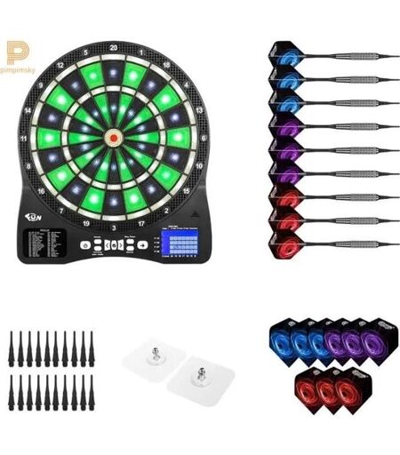 PIMPIMSKY Cible Jeu de Fléchette lectronique Score Automatique cran LED 9 Fléchettes 48 Jeux et 315 Variantes pour 8 Joueurs ...
