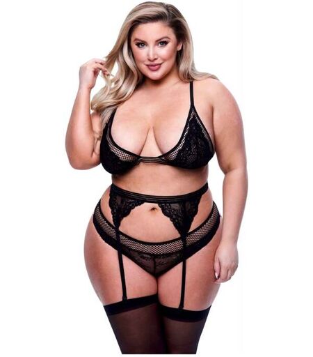Baci Lingerie Ensemble 3 pièces dentelle & résille noir GT