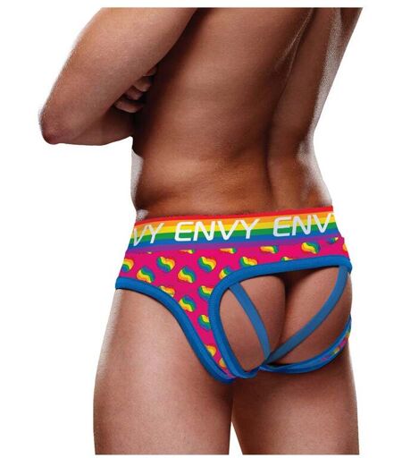 Ajoutez une touche de fantaisie à votre look avec le Jockstrap Rainbow Hearts de la marque Envy ! Ce jockstrap rose aux bordures bleues orné d'une multitude de petits coeurs multicolores enjolivera votre été pour le rendre aussi amusant et attractif que votre style. Une bande élastique aux couleurs de l'arc-en-ciel agrémentée du nom de la marque ceindra vos hanches pour vous assurer un ajustement parfait et une ouverture aux fesses traversée par deux lanières bleues vous permettra de jouir d'une lingerie aussi confortable que sensuelle. Existe aussi en version Slip (https://www.espaceplaisir.fr/envy-slip-rainbow-hearts.html) et Boxer (https://www.espaceplaisir.fr/envy-boxer-rainbow-hearts.html). Composition : 95% Polyester, 5% Élasthanne ...