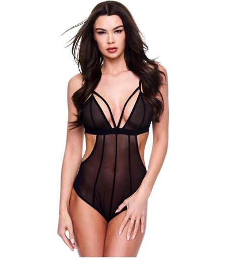Je mets en lumière votre charme. Je suis votre body ouvert maille transparente noir de la marque Baci Lingerie ! Guidé par l'élégance, j'habille votre corps d'une fine maille translucide noire ornementée de fines rayures noires au léger effet corset pour un style d'une sensualité inégalable. De plus, mes bonnets triangle agrémentés de fines lanières forment un somptueux décolleté en V qui met joliment en valeur votre poitrine. Au dos, je m'inspire d'un look deux pièces afin de souligner votre chute de reins et pour ajouter une touche d'érotisme, je dévoile votre entrajambe avec une ouverture coquine qui viendra rapidement à bout de la patience de votre partenaire ! Composition : 90% nylon, 10% élasthanne ...
