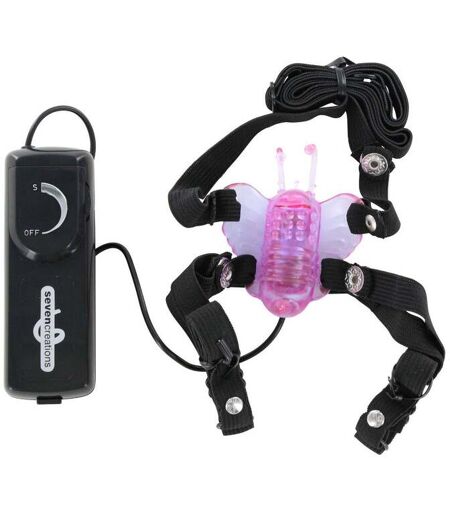 Découvrez la magie de ce Harnais Butterfly de la marque Seven Creations. Il éveillera en vous des sensations de plaisir sans les mains ! Le Butterfly Stimulator est un harnais auquel est accroché un papillon qui viendra stimuler votre vagin et votre clitoris avec ses antennes grâce à son moteur multivitesse ! Ce dernier, silencieux mais puissant, vous stimulera intensément ! Emportez-le de partout pour vous donner du plaisir ! Vous n'aurez qu'à enfiler votre harnais et profiter du moment présent ! Appuyez sur le bouton de la télécommande pour l'activer et changer les vitesses de vibrations. Votre stimulateur et sa télécommande sont fabriqués en ABS 100% hypoallergéniques. Fonctionne avec 2 piles AA (fournies). Pour une utilisation optimale de votre sextoy, espaceplaisir vous recommande d'utiliser un lubrifiant à base d'eau. Veillez à bien nettoyer votre sextoy avant et après chaque utilisation. ...