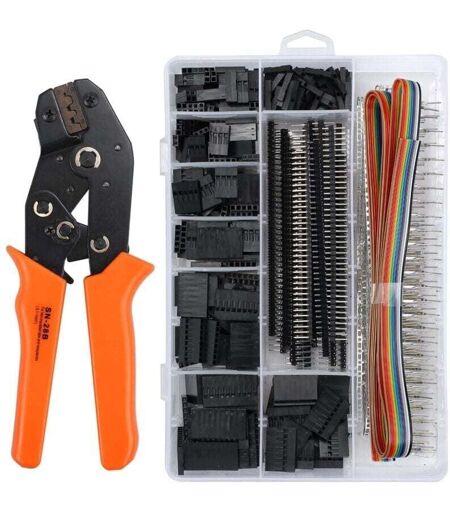 ODIPIE Kit de pinces à sertir Dupont avec 1 550 connecteurs à cliquet modulaires isolés mâles/femelles Dupont, 2,54 mm, 3,96 mm, 28-18 awg, 0,25-1,5 mm²