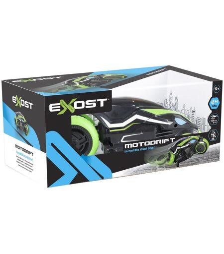 Moto télécommandée Exost Motodrift Cette moto télécommandée nouvelle génération est recommandée pour les enfants de plus de 5 ans qui vont pouvoir entrer dans le monde des véhicules télécommandés à grande vitesse. La voiture possède des roues arrières spéciales qui permettent de réaliser des drifts et d'affronter tous les obstacles (naturels ou que vous aurez créé) à 360 degrés sur un véhicule deux roues. Dimensions de la motodrift Exost: L23 x H10 x P10 cm Technologie 2, 4GHz Jouez jusqu'à 10 joueurs en simultané Piles: 2xAA (moto), 3xAA (télécommande) non incluses Dès 5 ans ...
