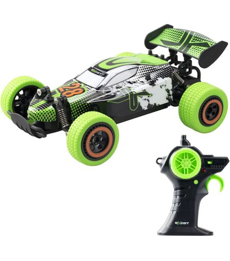 Ce buggy t?l?command? tout-terrain EXOST de 25 cm poss?de des suspensions qui lui permettent de franchir tous les obstacles ! Cette voiture t?l?command?e peut s'utiliser aussi bien en int?rieur qu'en ext?rieur et dispose de la technologie 2,4 Ghz ce qui permet de jouer jusqu'? 10 pilotes sans risques d'interf?rences. ...