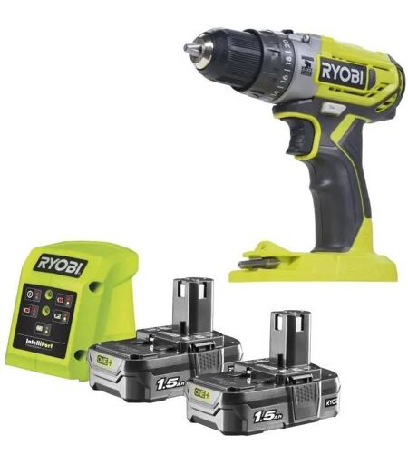 Perceuse-visseuse à percussion sans fil compacte - RYOBI - R18PD2-215G - 18V - Mandrin 10 mm - 2 batteries 1,5 Ah & chargeur 1,5 A