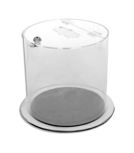 Collecteur transparent Probbax 12L fermeture à clef. Dim ouverture 11 x 3,8 cm. H25 cm, diamètre 25cm.