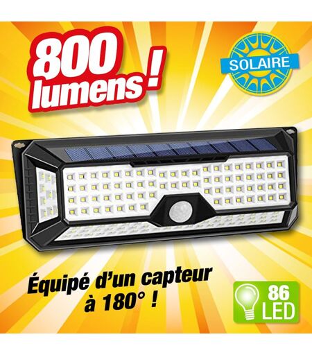 Projecteur à énergie solaire avec 86 LED générant 800 lumens (éclairage puissant) doté d'un capteur de mouvement. Sécurité et économies d'énergie garanties ! Ideal pour le Jardin, Escalier Extérieur, Patio, Terrasse, Cour, Accueil, Allée, portail, garage, Mur,... Pas de cablage à prévoir, installation immédiate. Sécurité et économies garanties. Votre jardin, votre terrasse, allées, votre garage sont éclairés quand il le faut et gratuitement. Eclairage qualitatif : Panneau d'éclairage à électrolyte qui améliore l'effet de lumière, les 86 LED assurent un éclairage ultime jusqu'à 800 lumens. Détecteur de mouvement avec 3 modes Intelligents équipé dun capteur à 180 ° qui permet de détecter les mouvements jusqu'à 10 mètres. Grand Angle Installation hyper simple, sans branchement, en quelques minutes Economique : votre projecteur ne consomme pas d'électricité, fonctionne à énergie solaire, vous faites des économies d'énergie ! Durable : conçu pour un usage extérieur, résiste aux intempéries ...