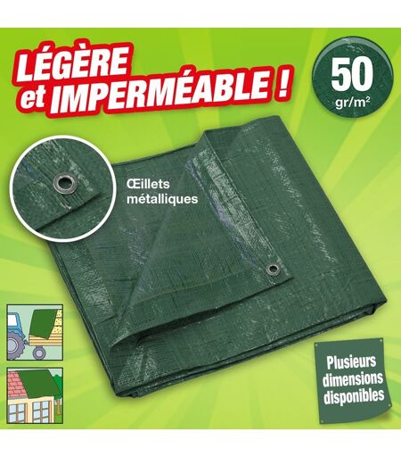 Bâche verte 50gr/m2 - imperméable - multi-usages intérieur et extérieur - Existe en plusieurs tailles dont 2 spéciales bois. Bâches vertes légères 50gr/m2. Dimensions finies. Equipées d'une corde PP dans l'ourlet et d'oeillets en aluminium tous les 1 m d'intervalle. Ces bâches sont proposées en 8 tailles différentes. Deux modèles sont spécialement conçus pour la couverture du bois : dimensions 1,6m x 6m et 2 x 8m. Elles permettent au bois d'être aéré même recouvert. Les oeillets tout autour permettent d'attacher et de lester la bâche. Les autres dimensions sont proposées en 6 tailles différentes pour répondre à tous vos besoins. L'ensemble de ces bâches est 100% imperméable, elles sont faciles à manipuler et multi-usages : travaux d'intérieur ou extérieur, couverture d'une remorque,... ...