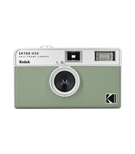 L'argentique demi-format L'appareil photo argentique Kodak H35 adopte un style rétro qui vous ramènera dans les années 60. Son demi-format permet d'associer deux photos consécutives dans un même tirage et optimise l'utilisation du film et les coûts associés. Le flash intégré permet d'obtenir des images claires même dans les conditions de faible luminosité. Léger et compact, il est facile à utiliser même pour les débutants et est parfait pour les voyageurs et les passionnés de photographie vintage. Deux images consécutives, une histoire unique ! Capturez deux fois plus d'images par pellicule grâce à son demi-format. Un rouleau de film de 36 expositions offrent environ 72 photos en demi-trame ! Avec ce demi-format, racontez une histoire en associant deux images consécutives en prenant par exemple un gros plan et un plan plus large d'un même environnement. Pour obtenir des photos portrait plutôt que des photos en paysage, orientez simplement votre appareil horizontalement. Laissez libre cours à votre imagination, les possibilités sont infinies. Une nouvelle dimension photographique Le rembobinage manuel du film vous assure un contrôle total de vos prises de vue et l'optique 22mm à deux éléments en acrylique garantit une netteté optimale. La vitesse de déclenchement de 1/100s permet de figer l'instant présent avec précision, même en mouvement. Équipé d'un flash intégré pour des photos lumineuses, il est alimenté par une seule pile AAA pour offrir une grande autonomie. ...