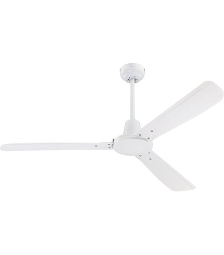 Dimensions et données techniques 220-240 V ~ 50 Hz Diamètre : 132 cm pour les pièces jusqu'à 25 m² Couleur du boîtier : blanc (métal) Couleur des pales : blanc (ABS) Inclinaison des pales : 15° Consommation du moteur : 11 - 56 W Tours par minute : 78 - 220 Débit d'air max. : 204 m³/min Niveau sonore max. : 52 dB(A) Diamètre du cache de fixation : 13 cm Distance des pales au plafond : 47,5 cm Inclinaison du plafond max. : 18° Fonction marche avant et marche arrière (mode été et hiver) par interrupteur sur le boîtier Interrupteur mural inclus : 4 vitesses / off Poids : 5,1 kg ...
