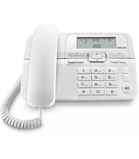 Téléphones filaires M20W/00 Parlez mains libres Parlez en mains libres avec ce téléphone filaire Plug & Play. Il est équipé d'un mode réserve de marche pour que vous puissiez passer des appels à tout moment, même en cas de panne de courant. Vous permet de garder une trace de qui est à l'autre bout de la ligne Parfois, il est bon de savoir qui vous appelle avant de répondre. Notre fonction d'identification de l'appelant vous indique qui est à l'autre bout de la ligne. Grandes touches et grand écran LCD Grand écran LCD de 9,2 cm (3,6") facile à lire. Journal des appels de 60 entrées Le téléphone garde une trace des appels manqués, composés et reçus dans le journal des appels de 60 entrées. Spécifications techniques Image/Affichage couleurs d'affichage noir et blanc Taille de l'écran 3,6" Son Sonneries Ouais fonctionnalités pratiques gestion des appels Identification de l'appelant entrant* Langue de l'interface utilisateur Anglais Mains libres : liberté dans vos appels Ouais Longueur du cordon d'alimentation 1,8 m capacité mémoire liste d'appels 60 Capacité de liste de recomposition dernier numéro Dimensions de l'emballage Profondeur 5,5 cm Poids brut 0,61 kg Hauteur 22,2 cm Poids net 0,53 kg Nombre de produits inclus 1 Type d'emballage Papier carton tare 0,08 kg Largeur 22cm type d'emplacement Horizontal ...