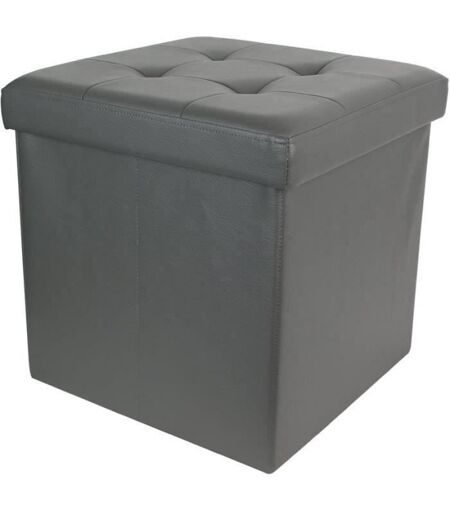 Home Deco Factory Hd3401 Pouf Coffre De Rangement Pliable Carré Simili Cuir Capitonné Gris H38 X 38 X 38 Cm