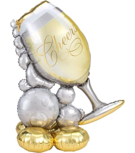 SJZG-Amscan 4246811, Ballon En Plastique Flûte À Champagne, Taille Env. 130 Cm, Argent Et Or, Ballon Airloonz En Plusieurs Parties, Champagne Pétillant, Cheers, Flûte À Vin, Cadeau, Décoration, Nouve