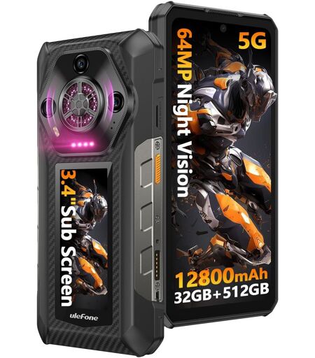 Ulefone Armor 30 Pro 5G Téléphone Portable Incassable, 3,4"" Écran Secondaire,32Go+512Go Noir