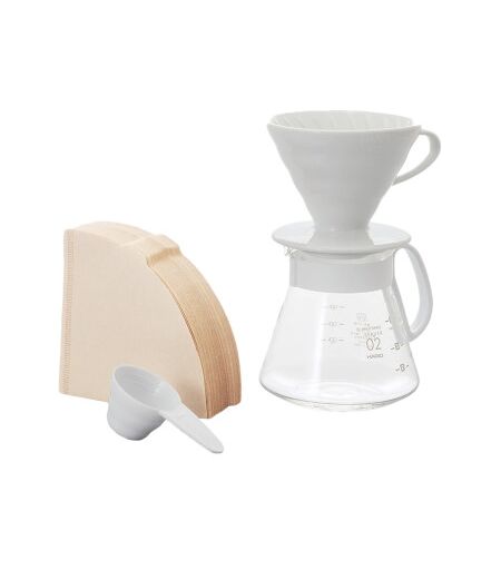 Kit Hario V60 Craft 02 (dripper+carafe+filtres+cuillère doseuse), blanc