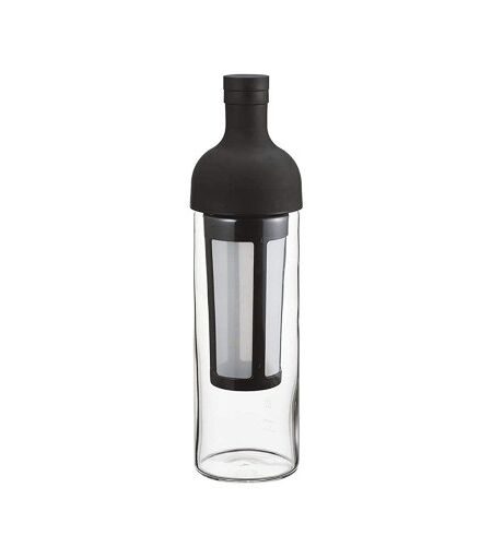 Préparez votre café avec raffinement et servez-le comme le vin le plus raffiné...Avec cette bouteille de café infusé à froid, vous pouvez préparer un délicieux café en utilisant uniquement du café moulu et de l'eau. Mettez le café moulu dans la passoire, fixez-la au bec verseur, puis versez lentement l'eau. Laissez la bouteille au réfrigérateur pendant environ huit heures avant de savourer votre boisson. Oui, c'est vraiment aussi simple que cela ! UN CAFÉ INFUSÉ À FROID POUR UN GOÛT DÉLICIEUSEMENT SUBTILSi vous utilisez de l'eau froide pour préparer votre café, les tanins et la caféine ne se libèrent pas aussi facilement. Vous pouvez donc déguster un café subtil et sans amertume.SEULEMENT DU CAFÉ MOULU ET DE L'EAU Pour obtenir une boisson délicieuse, il suffit de café moulu et d'eau. Vous pouvez également ajouter des glaçons, mais ce n'est pas impératif.PRÊT PENDANT LA NUITLaissez reposer votre boisson froide au réfrigérateur pendant huit heures. Vous pouvez tout préparer le soir de la veille et commencer votre matinée en sirotant une boisson rafraîchissante, délicieuse et stimulante !JUSQU'À 5 DÉLICIEUSES BOISSONSGrâce à cette bouteille, vous pouvez préparer en une fois jusqu'à 5 tasses (ou 650 ml) de café froid.MATÉRIAUX- Bouteille en verre résistant à la chaleur- Filtre en résine de polyester- Filtre en polypropylène- Bec et bouchon amovibles en caoutchouc de silicone ...