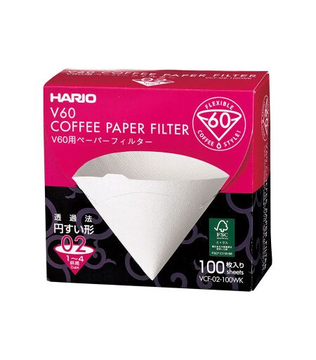 Filtres en papier blanc conçus pour les cafetières coniques Hario (Hario V60-02).Le paquet contient : 100 pcs. ...