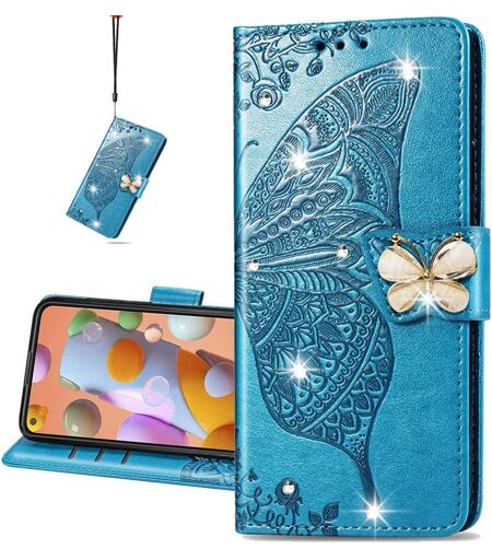 Phone For Samsung Galaxy Note 20 Ultra Coque Diamant Svelte Pu Bling Crystal Papillon En Relief Protecteur Flip Housse Pour Galaxy Note 20 Ultra Diamond Butterfly Blue Sd