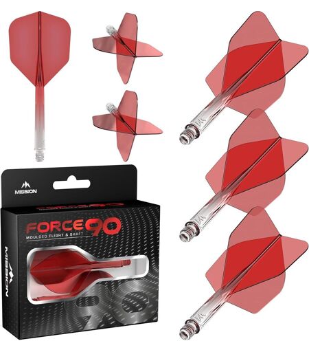 Mission Darts Force 90 \u2013 Flight and Shaft System intégré.Ressentez la force de la Mission Force 90 \u2013 un système de vol et d'arbre entièrement intégré Fabriqué à partir de matériaux de haute qualité et durables, le Force 90 gardera un angle parfait de 90 degrés entre les ailerons du vol pendant le jeu, offrant aux joueurs une trajectoire de vol cohérente à chaque fois.La Force 90 est à la pointe de la durabilité et de la résistance avec ces ailettes fabriquées à partir de matériau composite de haute qualité, donnant à chaque joueur la tranquillité d'esprit d'avoir une performance constante à chaque lancer.Les ailettes sur le Force 90 disposent de bords lisses pour aider à réduire les déviations pendant le jeu et les fait trancher l'air pour promouvoir une trajectoire plus vraie et plus précise.Disponible en trois formes différentes (n° 2. 6 et mince) et chacune en trois longueurs (courte, tweenie et moyenne) pour répondre aux préférences de tous les joueurs. Également disponible en plusieurs couleurs. ...