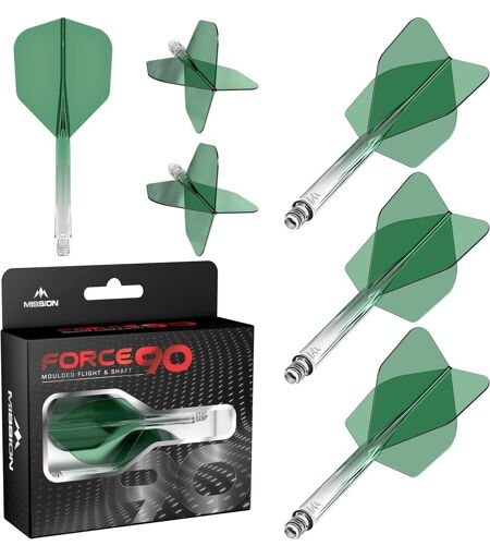 Mission Darts Force 90 \u2013 Flight and Shaft System intégré.Ressentez la force de la Mission Force 90 \u2013 un système de vol et d'arbre entièrement intégré Fabriqué à partir de matériaux de haute qualité et durables, le Force 90 gardera un angle parfait de 90 degrés entre les ailerons du vol pendant le jeu, offrant aux joueurs une trajectoire de vol cohérente à chaque fois.La Force 90 est à la pointe de la durabilité et de la résistance avec ces ailettes fabriquées à partir de matériau composite de haute qualité, donnant à chaque joueur la tranquillité d'esprit d'avoir une performance constante à chaque lancer.Les ailettes sur le Force 90 disposent de bords lisses pour aider à réduire les déviations pendant le jeu et les fait trancher l'air pour promouvoir une trajectoire plus vraie et plus précise.Disponible en trois formes différentes (n° 2. 6 et mince) et chacune en trois longueurs (courte, tweenie et moyenne) pour répondre aux préférences de tous les joueurs. Également disponible en plusieurs couleurs. ...