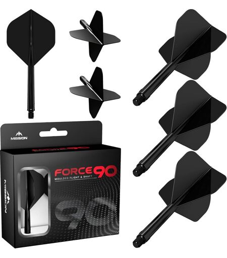 Mission Darts Force 90 \u2013 Flight and Shaft System intégré.Ressentez la force de la Mission Force 90 \u2013 un système de vol et d'arbre entièrement intégré Fabriqué à partir de matériaux de haute qualité et durables, le Force 90 gardera un angle parfait de 90 degrés entre les ailerons du vol pendant le jeu, offrant aux joueurs une trajectoire de vol cohérente à chaque fois.La Force 90 est à la pointe de la durabilité et de la résistance avec ces ailettes fabriquées à partir de matériau composite de haute qualité, donnant à chaque joueur la tranquillité d'esprit d'avoir une performance constante à chaque lancer.Les ailettes sur le Force 90 disposent de bords lisses pour aider à réduire les déviations pendant le jeu et les fait trancher l'air pour promouvoir une trajectoire plus vraie et plus précise.Disponible en trois formes différentes (n° 2. 6 et mince) et chacune en trois longueurs (courte, tweenie et moyenne) pour répondre aux préférences de tous les joueurs. Également disponible en plusieurs couleurs. ...