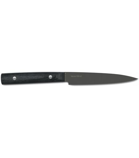 Profitez d'une efficacité quotidienne garantie grâce à ce couteau performant ! Lame pleine-soie de 12.1cm fabriquée en inox AUS-8A résistant à la corrosion Solidité Rockwell de 58/59 HRC : bon tranchant, aiguisage facile Revêtement titane : protection de l'acier + anti adhérence accrue Manche conçu en Pakkawood durable + 2 rivets Fabriqué au Japon en collaboration avec le chef Michel Bras ...