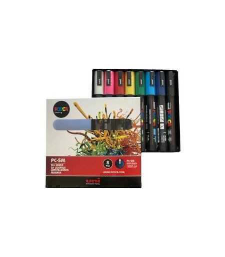 Pochette 8 marqueurs peinture à eau Posca PC-5M - pointe conique polyester moyenne 2,5 mm - coloris assortis