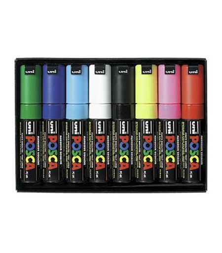 Boîte de 8 marqueurs peinture à l'eau Posca PC-8K - pointe biseautée acrylique large 8 mm - coloris assortis