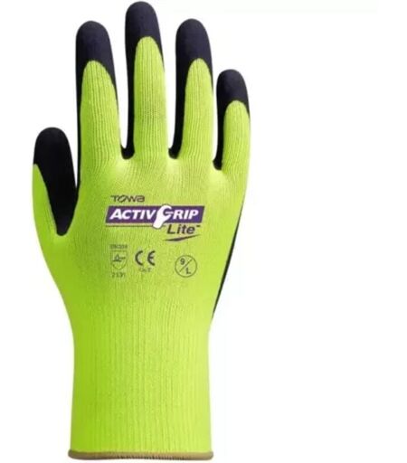 Gant enduit de latex Microfinish avec une confortable doublure fluorescente en polyester jaune. La doublure tricotée sans couture présente une forme ergonomique et offre un confort maximal et une fatigue minimale de la main. L'ActivGrip bénéficie d'un revêtement double permettant de réduire fortement la perméabilité à l'humidité. Convient pour les travaux exigent une bonne adhérence tant dans des conditions sèches que mouillées. Taille: S ou L Couleur: Jaune Homologation: EN388 Vendu par paire ...