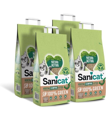 Litière Végétale Agglomérante Active Natura 100 % Green,Haute Absorption Et Formation D'agglomérats De Manière Naturelle,Produit Recyclé,4 X 2.5 Kg