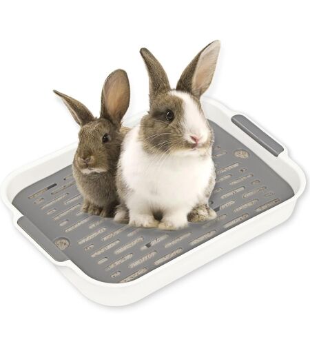 Bac À Litière Pour Lapin,Bac À Litière Pour Lapin,Litière,Grand Coin De Toilette Pour Petits Animaux,Lapins,Cochons D'inde (Blanc/Gris)