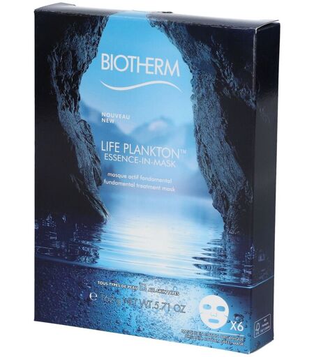 Découvrez Life Plankton™ Essence-In-Mask : un masque hydratant pour tous les âges et tous les types de peaux, même les plus sensibles. L'histoire commence dans l'une des régions les plus préservées d'Europe: les Pyrénées françaises. Dans un endroit miraculeux où les soldats venaient soigner leurs blessures dans l’eau d’une des grottes au coeur des Pyrénées.En 1952, un médecin de l'armée, le Docteur Julien Joss, qui a passé sa vie à la recherche de la médecine ultime, a percé le mystère de la fontaine miracle en révélant un ingrédient vivant extraordinaire et unique : le Plancton de Vie™Pour recréer les conditions naturelles extraordinaires de la fontaine miracle, Biotherm a développé un processus de bio-fermentation unique en son genre appelé Fermogenesis ™, qui permet de concentrer le Plancton De Vie™ jusqu'à 400 000 fois plus par rapport à sa surface habitable naturelle. Le Plancton de Vie™ est maintenant au cœur de tous les produits Biotherm.LIFE PLANKTON* ™ ESSENCE-IN-MASK possède la concentration la plus élevée en Plancton de Vie™ de tous les produits Biotherm, pour une peau éclatante, hydratée et régénérée.Après 1 application, recréer le toucher et la sensation d'une peau neuve et saine, comme après un soin visage : une peau parfaitement apaisée, intensément hydratée et éclatante de jeunesse.*Plancton de Vie™LIFE PLANKTON ™ ESSENCE-IN-MASK, fabriqué à partir d'un coton organique biodégradable infuse la peau de Plancton de Vie™ en seulement 8 minutes.TESTÉ DERMATOLOGIQUEMENT. BénéficesEn 1 application, votre peau est apaisée, hydratée et plus éclatante.*Utilisée deux fois par semaine**: la peau est régénérée 86%, la peau est plus douce et plus souple 85%, la peau semble plus nette 82%.En cas d'utilisation continue pendant 1 mois***: la peau est parfaitement équilibrée 94%, les imperfections de la peau sont moins visibles 92%, et la peau paraît plus jeune 90%.* auto-évaluation, 84 femmes, après 1 application.** auto-évaluation, 84 femmes, 2 applications en 8 jours.*** auto-évaluation, 84 femmes, 2 applications / semaine pendant 28 jours.IndicationsMasque hydratant pour tous les âges et tous les types de peaux, même les plus sensibles.Sans alcool.Conseils d'utilisationAprès avoir nettoyé votre peau, appliquez le masque sur votre visage en insistant sur ses contours. Laissez le masque reposer 8 minutes et retirez-le. Massez délicatement jusqu'à pénétration complète de la formule. Pas besoin de rincer.Quand utiliser ce masque ?En cas de besoin d'hydratation rapide.Chaque vendredi pour régénérer la peau du stress de la semaine.En tant que soin visage intensif, appliquez le masque 2 fois par semaine pendant 4 semaines consécutives pour une hydratation profonde et complète de votre peau.Principaux actifsConcentré à 5 % en Plancton de Vie™ CompositionAQUA / WATER, GLYCERIN, ALCOHOL DENAT., DIMETHICONE, BUTYLENE GLYCOL, TIN OXIDE, CARBOMER, DIMETHICONOL, SODIUM HYDROXIDE, ADENOSINE, DISODIUM EDTA, CAPRYLYL GLYCOL, VITREOSCILLA FERMENT, PHENOXYETHANOL... ...