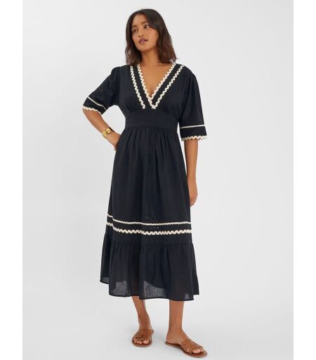 Accessorize Accessorize Robe mi-longue Ric Rac à col en V Noir Grand