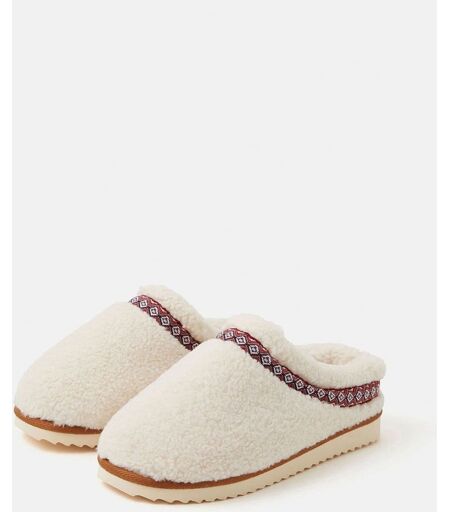 Sorry, I can't come out tonight, I'm too cosy. Made to look and feel like you're walking on clouds, these mule slippers feature a soft Borg outer and lining, with a woven patterned trim to finish. Tige - 100% de polyester. Doublure - 100% de polyester. ...
