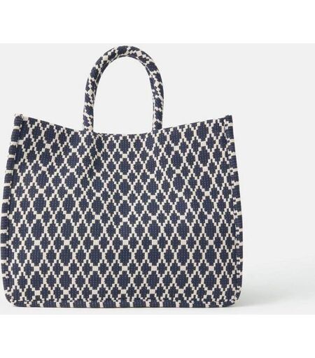 Patterned with bold geometric shapes in navy blue, this handheld bag is the perfect pick for errand-running or last minute grocery shopping. Features a magnetic button fastening and inner zip pocket. Principales 48% Polyester, 43% Coton, 9% Autres fibres. Doublure 100% Polyester. ...